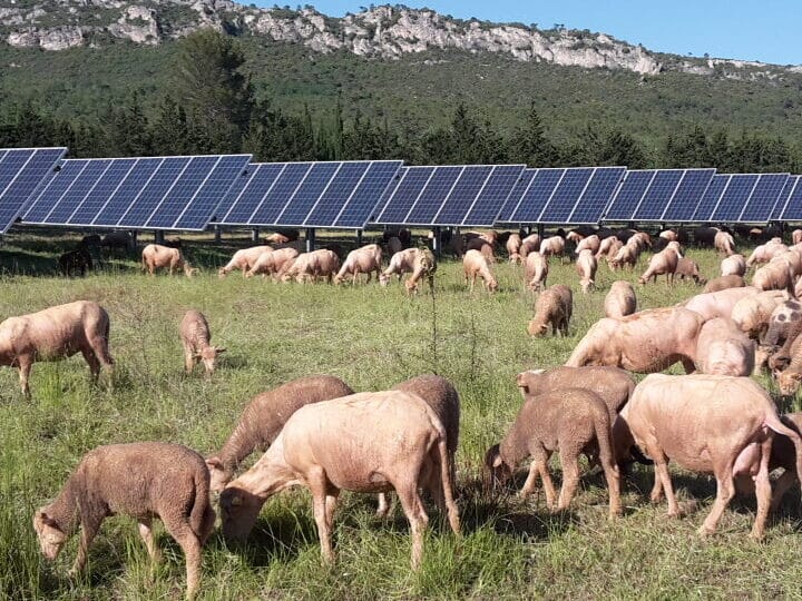 Des ovins sur la centrale solaire